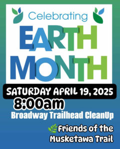 Come join us as we take the time to clean-up the Broadway Trail Head parking lot and surrounding trail. Please bring gloves to use. We will provide trash bags to contain the trash. Work will include picking up trash and light raking of leaves. Help us celebrate Earth Month by sharing some love with this Muskegon trail head on the Musketawa Trail.